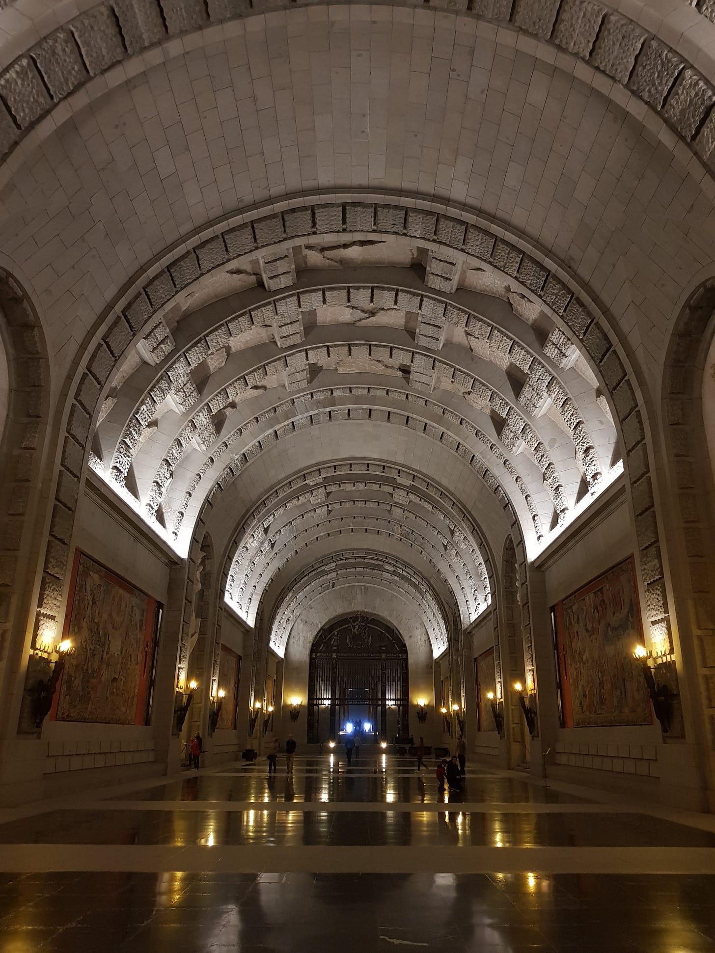Inside the 260m-long basilica there is more space, and silence. The chapels are sparse, and the space between them shy of much decoration. It is essentially a vast, empty tunnel. Grim, bleak, and imposing.
