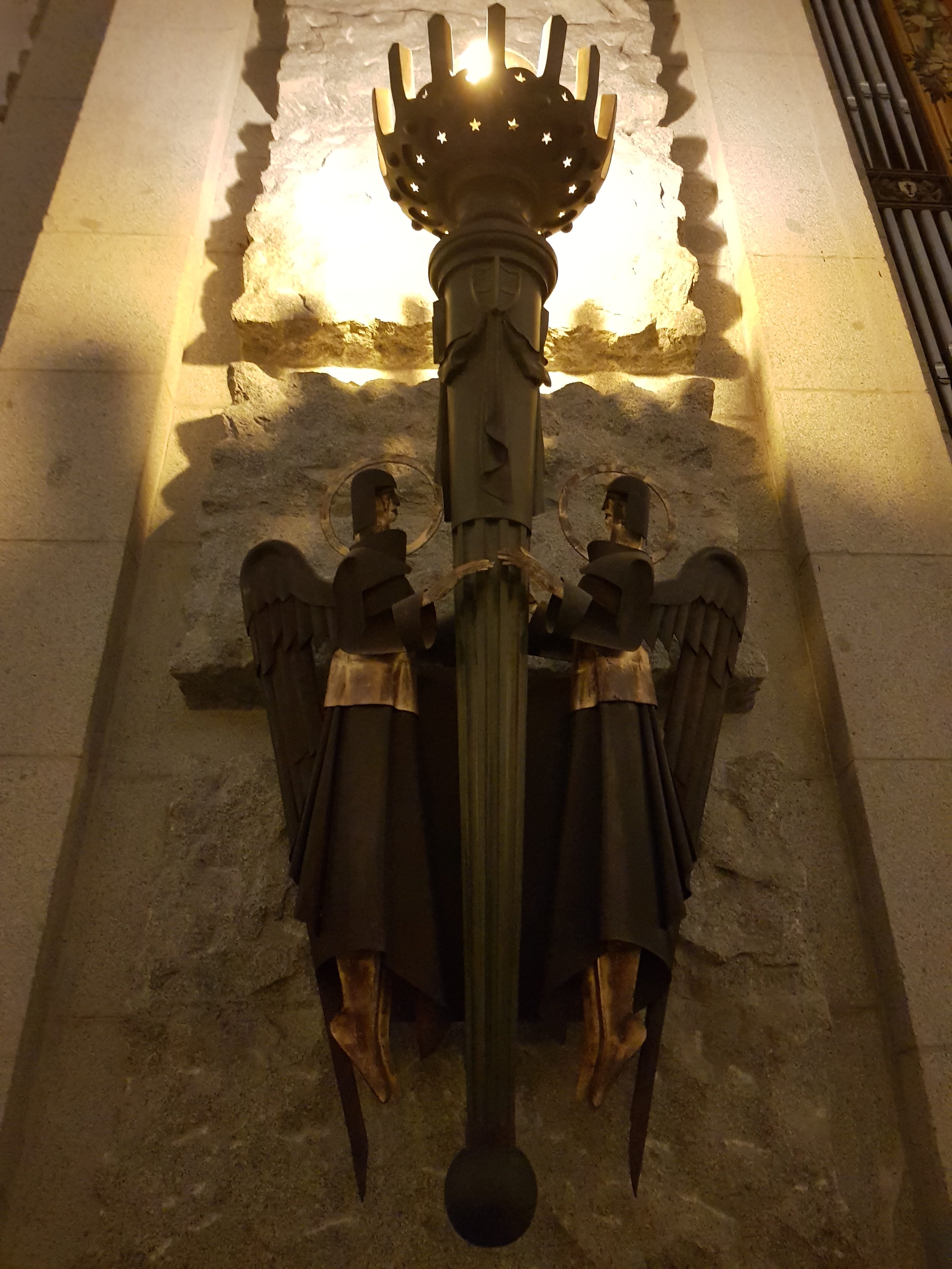 Along the walls of the nave hang the eight huge Apocalypse Tapestries, each of them almost nine metres long. These 16th century depictions of plagues, famine, pestilence and war seem about right, in the circumstances. At first a dragon with ten horns and seven heads doesn’t seem to fit with Franco’s conception of a “glorious crusade”, until you get to the final tapestry: the armies of Christ, riding in on white horses, are arriving to vanquish the hellish beast.